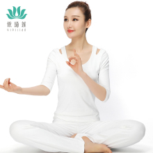 依琦莲2017肩部镂空中袖白色瑜伽服套装女显瘦瑜珈团演愈加健身服