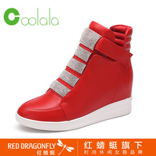 红蜻蜓coolala春季新品真皮皮鞋女内增高鞋休闲运动高帮鞋女