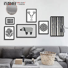 北欧字母动物黑白装饰画书房办公室挂画创意餐厅玄关壁画客厅墙画