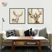 清颖阁 客厅装饰画 现代简约卧室挂画沙发背景墙壁画三联油画麋鹿