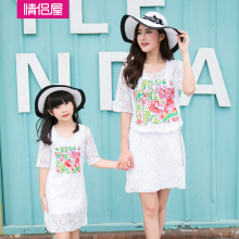 情侣屋 亲子装2017新款 夏装 韩版蕾丝母子装长款 连衣裙母女装