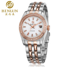 宾伦 男士手表机械表钢带 全自动玫瑰金镶钻男表 防水商务表