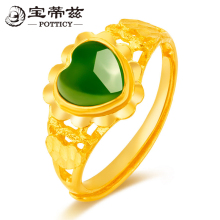 宝蒂兹 999足金黄金戒指 爱心足金镶玉戒指女款正品生日礼物