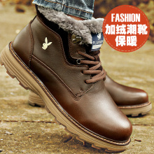 花花公子男鞋冬季保暖高帮男靴雪地靴马丁靴男士短靴工装靴鞋子男