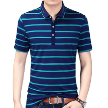 T恤男夏季新款时尚修身短袖上衣中青年男士商务休闲条纹polo衫
