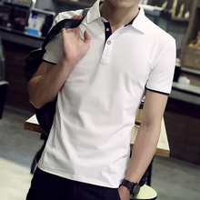 夏季t恤男短袖2017新款韩版修身翻领男士polo衫v领纯色休闲体恤潮