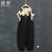 暖树夏装新款 细腻阔腿吊裆高腰休闲棉麻九分背带裤女显瘦宽松薄