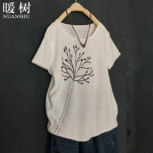 暖树夏季新品 柔软精品纯棉编织百搭休闲宽松针织衫女套头半袖