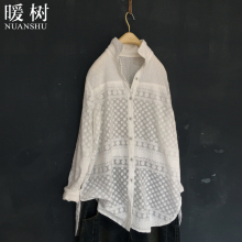 暖树2016秋冬新款 文艺范儿全身刺绣精美百搭宽松白衬衫女长袖
