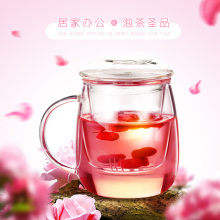 雄泰玻璃杯圆趣双层杯子隔热带盖过滤女士无色透明加厚办公室泡茶
