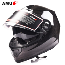 AMU摩托车头盔全盔双镜片碳纤维头盔机车骑士安全盔街车跑盔男女