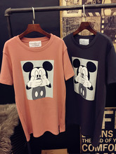 韩国东大门2016春夏卡通米奇宽松大码显瘦开叉中长款短袖T恤女潮