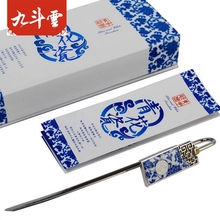 九斗云 中国风青花瓷书签瓷贴面金属 精装盒 古典文艺外事礼品