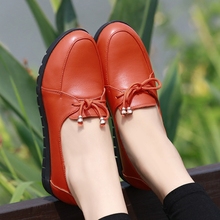 系带皮鞋女秋冬平跟单鞋女防滑孕妇鞋真皮深口单鞋大码女鞋41-43