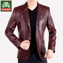 nian jeep秋季男装PU皮夹克外套男中长款翻领商务休闲革夹克衫
