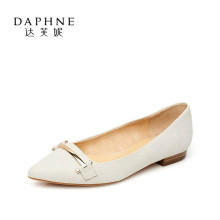 Daphne/达芙妮女鞋 夏季平底单鞋 时尚金属装饰蛇皮纹尖头女单鞋