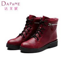 达芙妮女靴 冬季平跟女鞋 马丁靴女靴子系带防水台短靴