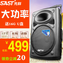 先科大功率移动电瓶15寸广场舞音响户外拉杆便携式低音炮插卡音箱