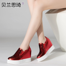 春秋季新品 真皮内增高休闲单鞋防水台厚底深口高跟鞋女鞋