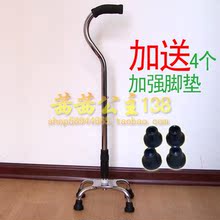 全不锈钢 四脚拐杖 四角拐杖 手杖 全不锈钢 送固定器+4个脚垫