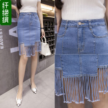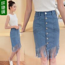 牛仔裙春夏季女2017新款韩版流苏短裙高腰包臀裙百搭中长款半身裙