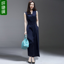 2017夏季新款连衣裤显瘦连体裤女夏九分裤高腰韩版宽松阔腿套装潮