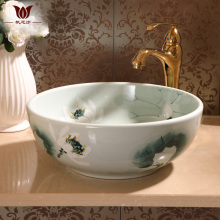 阳台洗手盆艺术台盆田园台上盆中式面盆时尚陶瓷洗脸盆小荷花圆