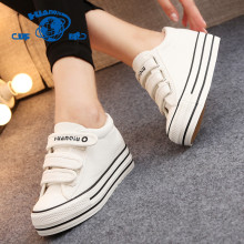 环球 新款帆布鞋女韩版潮内增高鞋 魔术贴休闲厚底学生女布鞋