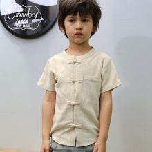 男童短袖衬衫麻2017新款童装男孩夏装时尚立领中小童上衣衬衣