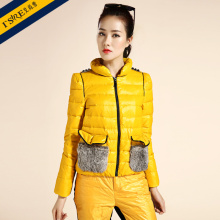 艾尚雪 新款韩版可爱兔毛口袋羽绒服女短款季末清仓 05221