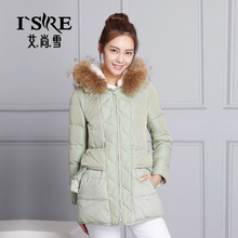 I’SRE/艾尚雪2016新中长款修身羽绒服女貉子毛领时尚外套潮09208