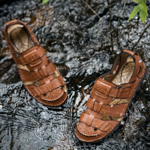 2017夏季新款百搭罗马休闲鞋户外沙滩鞋个性韩版真皮男士包头凉鞋