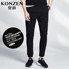 KONZEN空间男装夏季休闲裤黑色男裤子修身潮流运动裤束脚裤小脚裤