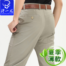 纯棉男裤夏季薄款中年男士商务休闲裤男高腰直筒裤中老年男裤免烫
