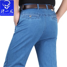 2017春夏薄款男士牛仔裤男商务休闲中年牛仔裤男直筒男裤高腰宽松