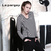 纳帕佳lapargay2017春装新款条纹套头百搭显瘦中长款针织衫女开衫
