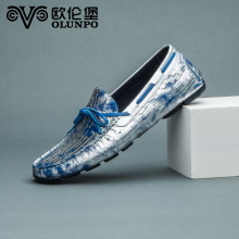 Olunpo/欧伦堡新品时尚豆豆鞋男 英伦真皮套脚迷彩休闲鞋