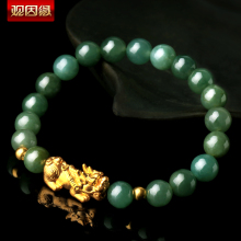 正品黄金貔貅手链女款翡翠冰种 足金手串 天然绿玉珠手镯生日礼物
