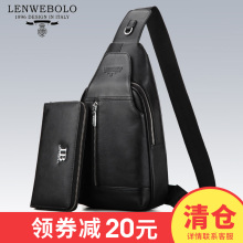 伦威保罗真皮胸包男士斜挎包牛皮男包单肩包旅行休闲外出背包韩版