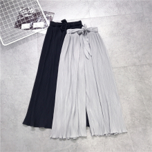 LSD韩版宽松显瘦百褶雪纺荷叶边松紧腰阔腿裤 百搭九分裤休闲裤女