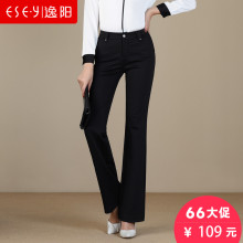 逸阳女裤春季新品黑色休闲通勤喇叭裤女气质款大码微喇裤长裤2206