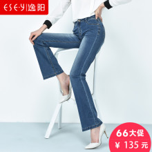 逸阳女裤2017春季新品大码小微喇牛仔裤女修身显瘦喇叭裤子0670X