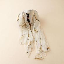 杭州丝绸高档真丝丝巾100%桑蚕丝女士围巾长款春秋季百搭马蹄莲花
