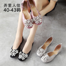 *弄里人佳新款水钻蛋卷鞋大号平底单鞋40 42瓢鞋加大码女鞋41-43