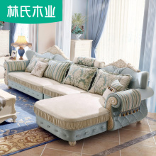 林氏木业欧式布艺沙发组装法式复古客厅转角贵妃布沙发家具980