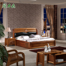 隆力森特价金丝木双人大床 全实木床1.8米 纯实木家具中式866