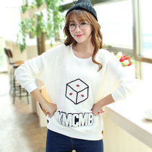 2016秋冬新款女装韩版宽松印花字母长袖打底针织衫上衣套头毛衣