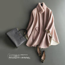 欧美高端女装领口水貂毛中长款宽松版羊绒羊毛斗篷大衣外套女6201