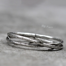 回忆中的白桦林 雨墨之森原创设计手工复古99纯银情侣手镯手链