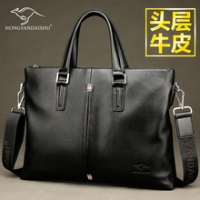 鸿岩袋鼠真皮手提男包休闲横款商务斜挎单肩包牛皮公文电脑背包包